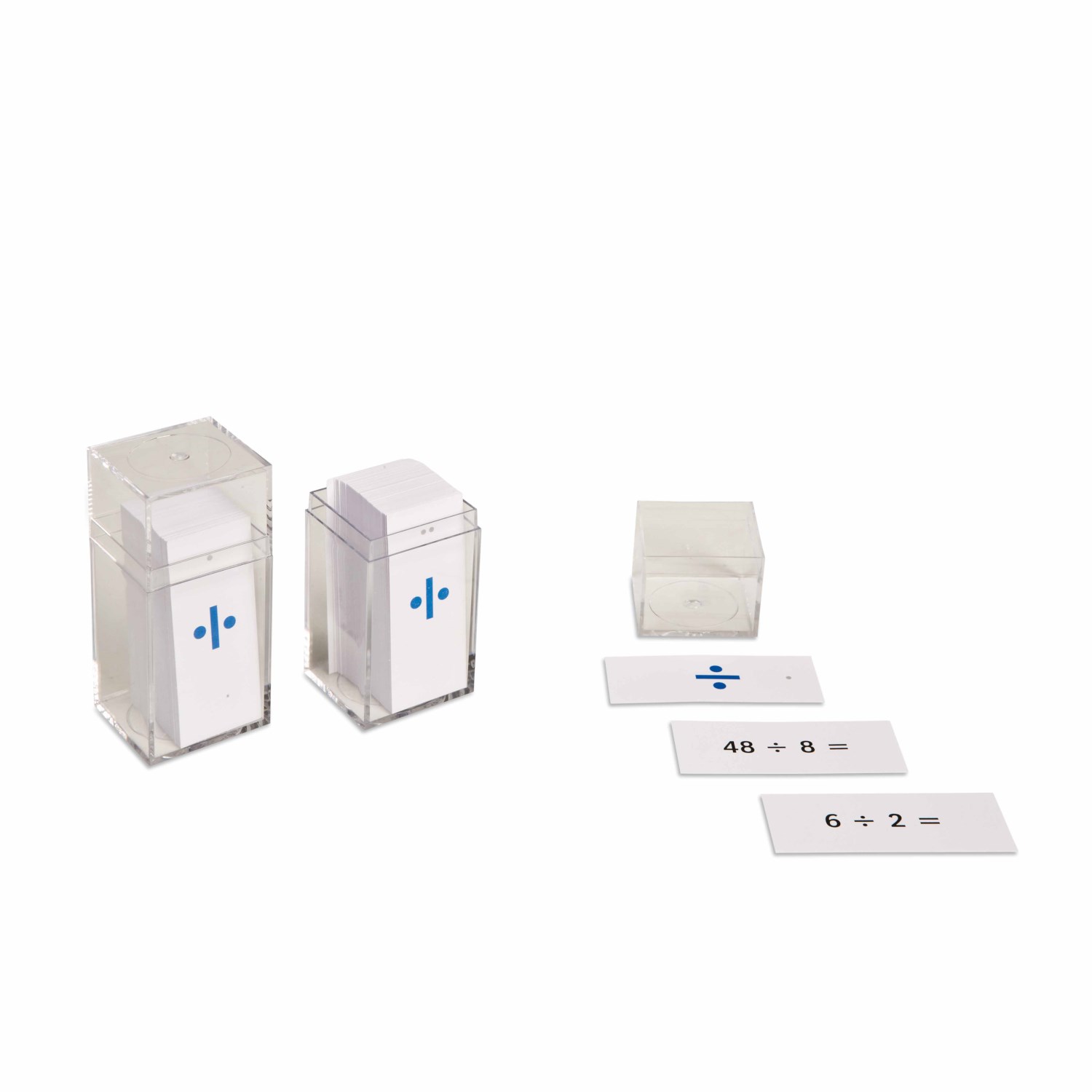 2 sets of color-coded unit division combinations (equations) slips. 1 set of combinations for use with each of the two Division Working Charts. Each set is supplied in a separate plastic box.